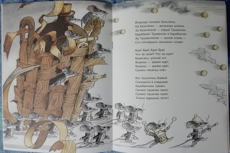 Как мыши с котом воевали - покупала специально для самостоятельного чтения. Завис над разворотом с пушками.