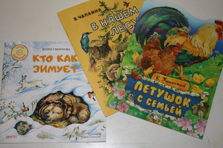 Тоненькие книжки. Ушинский с прекрасными иллюстрациями. В.Чаплина с короткими и ёмкими рассказами. И книга "Зимовье зверей" сочетает короткие тексты и восхитительные иллюстрации.