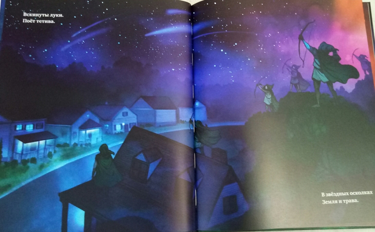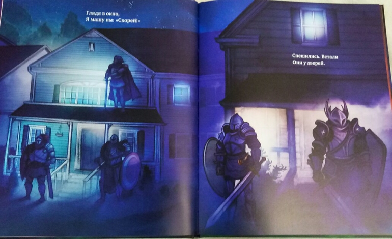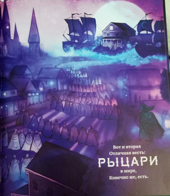 Новинка Ночные рыцари , небольшого аккуратного формата, меньше А4, в наших любимых с сыном фиолетово- розовых тонах, немного мрачново, но с яркими светлыми пятнами, очень впечатляюще и завораживающе!
