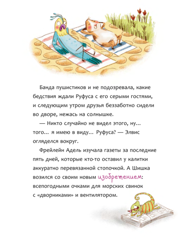 Даже взрослым интересно, что делают домашние животные в одиночестве - что уж говорить о детях! Португальская писательница Катя Алвес точно знает ответ! Морские свинки Шишка и Берти выбрались из клетки и открыли для себя огромный мир, полный приключений. Скучать им точно не придётся - ведь на подходе работа для настоящих детективов! Найти фамильную ценность и карту сокровищ, да ещё и успеть вернуться в клетку до прихода хозяев… С такой задачей под силу справиться только ловкой банде пушистиков! Эту увлекательную книгу можно читать как самостоятельно, так и вместе с родителями. Кто знает, может и ваши домашние любимцы собрали свою банду?