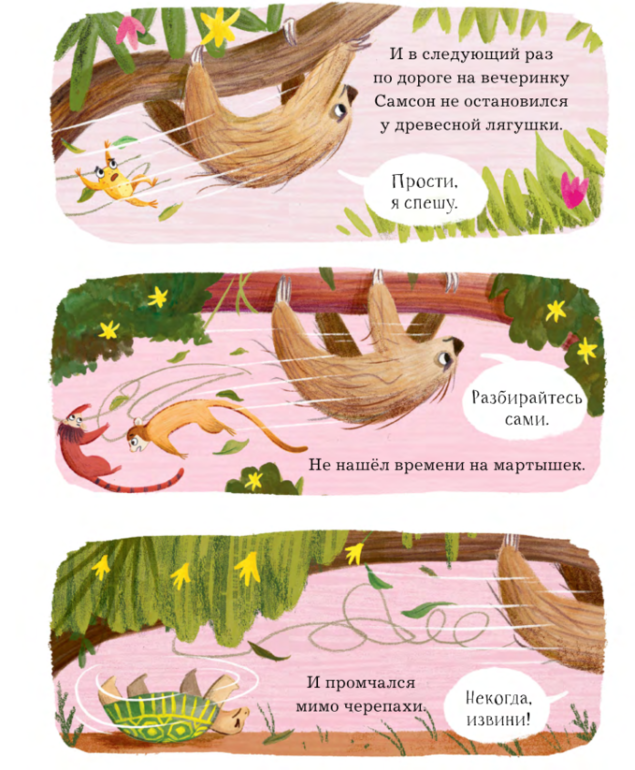 Ленивец Самсон просто обожает делать подарки своим друзьям! Но когда они устраивают свои весёлые вечеринки, то Самсон всегда опаздывает. Получится ли у него прийти вовремя в следующий раз?