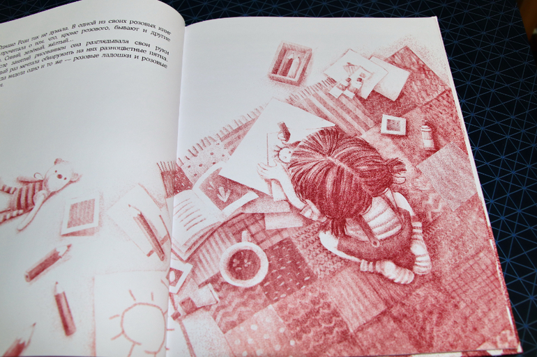 Прочитав эту розовую сказку, понимаешь, насколько неполноценен мир без буйства красок, окружающих нас в повседневной жизни. Ведь мы не задумываемся об этом, пока не побываем в такой одноцветной действительности. Как понять спелый помидор или зеленый, если он для тебя всегда одного цвета. И как можно нарисовать разноцветные яркие картинки, которые так любят все дети, если все карандаши и краски одинаковые?! И кто, как не ребенок, сможет прочувствовать, чего лишались герои данной книги, окруженные розовым однообразием.