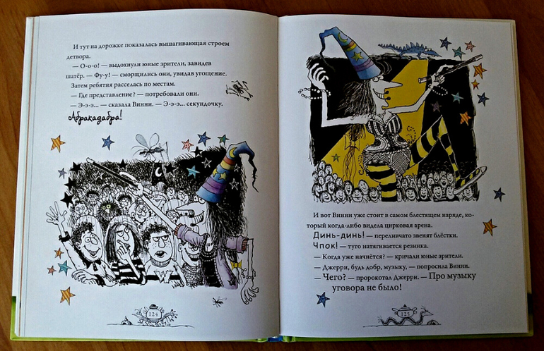 Только с математикой у меня, видно, очень плохо, потому что за неделю мы осилили только треть книги. А все потому, что дочке очень понравилась ведьмочка Винии и ее абсурдно-забавные приключения. Мы каждую историю читали столько раз, что дочка успевала ее наизусть выучить и от души насладиться озорными словечками и волшебными штучками Винни.