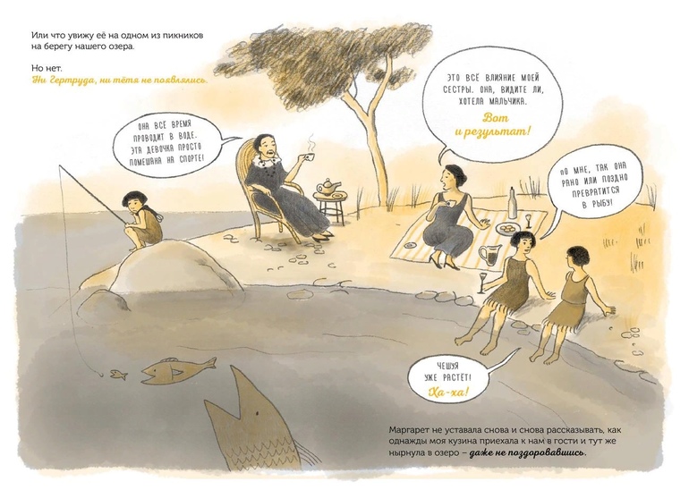 Искусно сочетая текст и иллюстрации, писательница Элис Келлер и художница Вероника Труттеро создали книжку, балансирующую на грани между комиксом, книжкой-картинкой и маленькой повестью. И сама история, и выдержанные в неярких тонах старой фотографии рисунки переносят читателя в начало прошлого века, чтобы напомнить: иногда «плыть против течения» - единственный способ добраться, куда следует. А заниматься тем, что на самом деле нравится, важно и весело, что бы кто об этом ни думал.