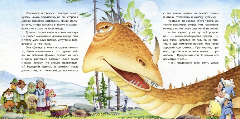 Дракон открыл глаза и сонно моргнул. Он увидел аккуратные домики вокруг себя и толпу маленьких гномов, испуганно таращившихся на него.