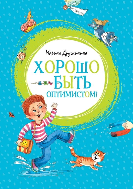 Марина Дружинина "Хорошо быть оптимистом" - короткие веселые рассказы "про ребят". Мои оба такое любят, поэтому оба с удовольствием прочитали. Мне рассказы тоже понравились, напомнили небольшие рассказы из журанала "Мурзилка", возможно они там были когда-то напечатаны, потому что в некоторых рассказах есть упоминание об этом желтеньком герое или об этом журнале. Приятным моментом оказалось наличие ляссе - очень удобно, а то у нас все книжки чем только не закладываются - и открытками и фантиками и даже купюрами из "Монополии")))