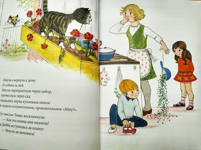 Но что мне нравится в этих историях , так эта любовь и забота которая царит в семье. Дети проснувшись ночью, увидели, что Мяули до сих пор не вернулась и пошли её искать в сад :