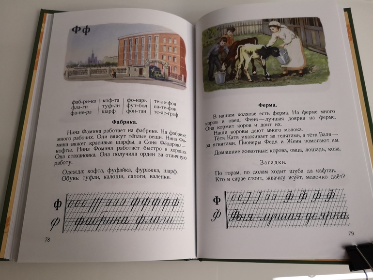Многие печалятся, что современные буквари неудобны и перегружены ненужными нововведениями. Ну а тут классика советского образования. Подача материала начинается с отдельных букв, картинок и черточек, и постепенно усложняется. Надеюсь, по фото будет видно динамику