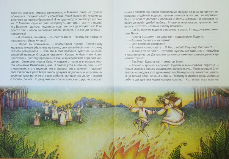 Ребята узнают, как отмечали на Руси летние праздники Троицу и Ивана Купала. А сколько вкусных угощений можно было отведать на Спасы - яблочный, медовый, ореховый!
