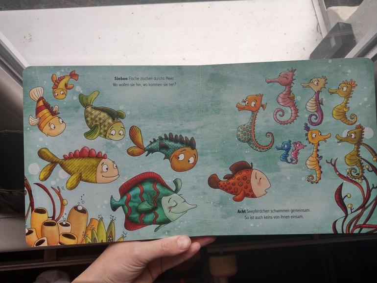 Но из тех, что лежит у него на полке, реже всего берется эта книга. И то ее беру я, так классно потрогать пальцами эти неровности😁 сына книга не трогает, ни тактильно, ни картинками🙄