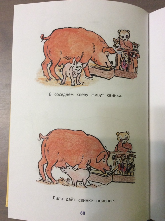 Наши поиски сразу же увенчались успехом: первая свинья нашлась в книге, которую мы читали сегодня, - соседка кошки из пьесы «Кошкин дом».