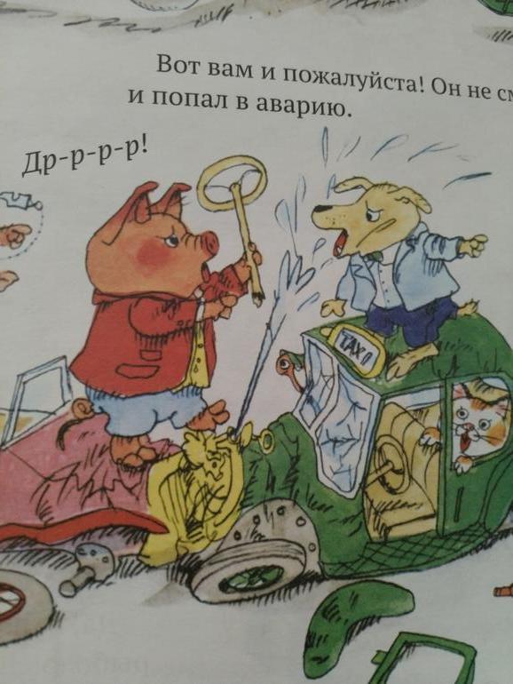 Что то я все больше волка жалею)) а где на хрюшке собака едет, это из какой книге?