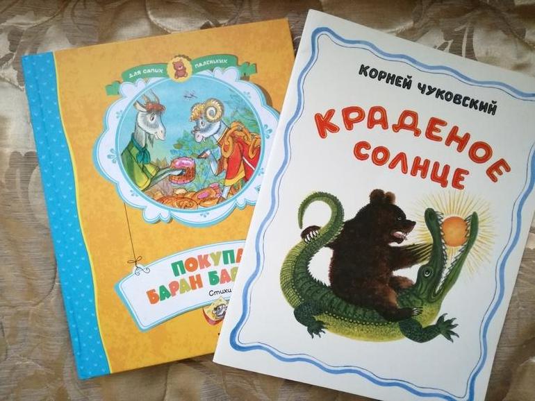 Отличные первые покупки!)Краденое солнце купила года два назад на Озоне букинистическое!С иллюстрациями Митурича!Потому,что надоело по 10 раз читать Бармалея и Мойдодыра)))))