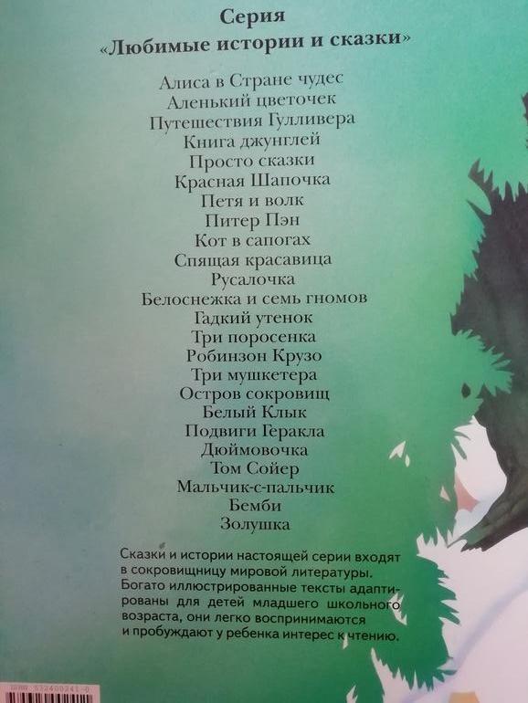 У нас был когда-то сборник с этими иллюстрациями. Там кроме Пети и волка. были еще Али-Баба и сорок разбойников, Гадкий утенок и др. Тоже отдали, только место занимала. Хотя когда-то сын любил, собственно ее Егор с полки в книжном и схватил, и не выпустил из рук. А мне Диснеевский стиль рисунков не нравился совсем. Отдали племяннику на растерзание)