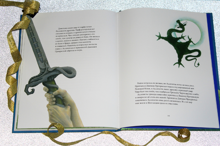 Есть тут сказка и про колдунью, которая мечтала забрать у матери ребенка. И про то, как мальчику удалось подчинить злого оборотня, погубившего немало мужчин в их крае. И про спасение умной собаки, которая отлично служила своему спасителю. Есть и сказки о великой силе любви. Ну и конечно же, сказка про гигантского дракона, размером со всю Шотландию.)