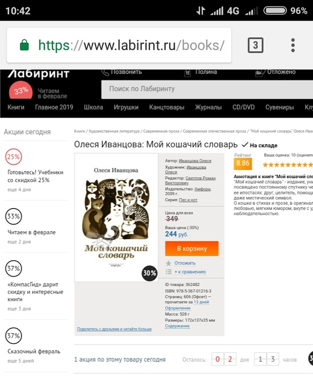 младшим школьникамХочу написать отзыв про книжку «Рысь-Брысь, или кошки о кошках», от издательства Антология, серии «Мой удивительный мир». Хотите узнать про домашних любимцев кошек, обязательно прочтите с ребенком эту книгу - котопутеводитель. Здесь рассказывается, какие бывают породы кошек, об их повадках, характере. Все истории написаны доступным и увлекательным языком. Отличные иллюстрации запомнятся вам и вашему ребенку.