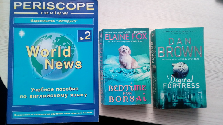 Где-то в 2008 году мы с мамой ездили к родственникам на Украину, и на один день попали в Киев. Там, когда было свободное время, я зашла в книжный магазин. Вообще хочу сказать, что стремления покупать книги у меня почему-то никогда не было. Но в тот период я изучала английский язык в институте, и решила взять что-нибудь для этого. Выбрала какой-то журнальчик, он меня почему-то привлек. Сразу скажу, что так я его и не прочитала, тк в нем собраны какие-то статьи по политике, экономике и тд, и много незнакомых и ненужных мне слов. Но книга до сих пор лежит у меня(