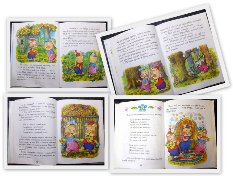 Сказок в сборнике всего три: "Три поросенка", "Кот и Лиса", "Кот и петух".