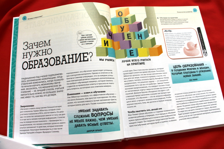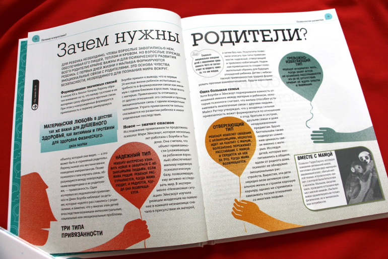 Вся эта серия книг издана в виде инфографики - это самый лучший способ понять и усвоить информацию. Это схемы, короткие блоки информации, стрелки, картинки, сноски на полях. Написано понятно и по-человечески. Книгу лучше прочитать родителям, а после, при возникновении вопросов, можно прямо по главе давать в руки ребенку.
