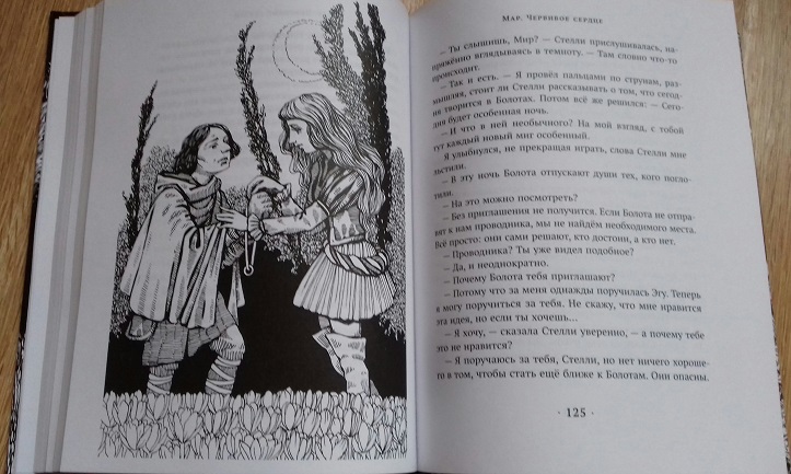 Вы думаете, теперь будет рассказано о том, что было в Лабиринте? Ага, я тоже так думала, наивная))) Но вторая книга - совсем о другом. Ну то есть вообще. Другое время, другие герои. Это история монстра Замка Серых Садов. История Мира - маленького горбатого карлика с прекрасным сердцем, его дружбы с прекрасной принцессой Стелли - первой королевой, прошедшей Лабиринт. И его Музыки, читающей сердца людей.