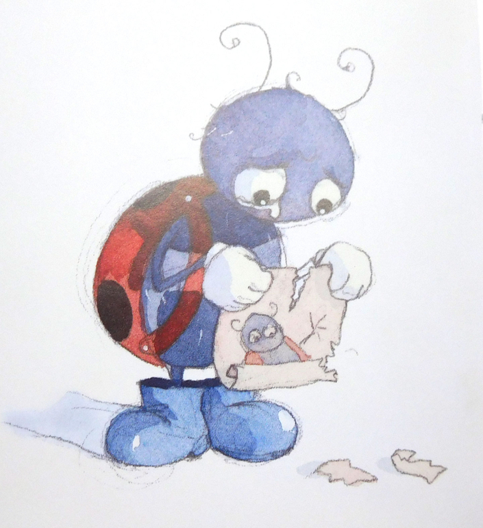 Сюжет этой книги не оригинален: потерявшийся ребёнок ищет маму. Известный бельгийский автор и художник Квентин Гребан отправил на поиски мамы маленькую божью коровку Сюзетту, которая очень любит рисовать. У автора получилась поучительная история с линейным сюжетом: божья коровка так увлеклась рисованием, что сама не заметила, как ушла далеко от дома.Справившись с испугом, она придумала, как отыскать маму - нужно нарисовать её портрет и показать его окружающим. Возможно, кто-нибудь вспомнит её маму...