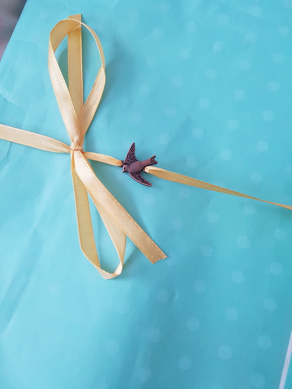 Заметили, ленточка то с ласточкой тоже лисьего цвета. Я сразу и не заметила, поняла только когда стала закуркуливать её в коробочку к лисенку).