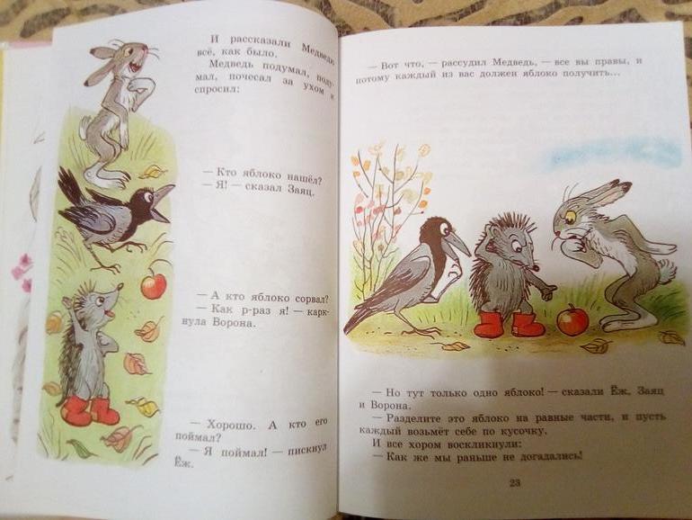 Это сказка в стихах, которая рассказывает, что когда-то у ежа не было колючек, и он очень опасался острых зубов лисы