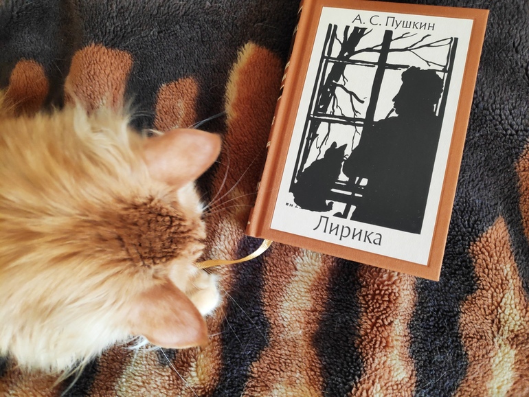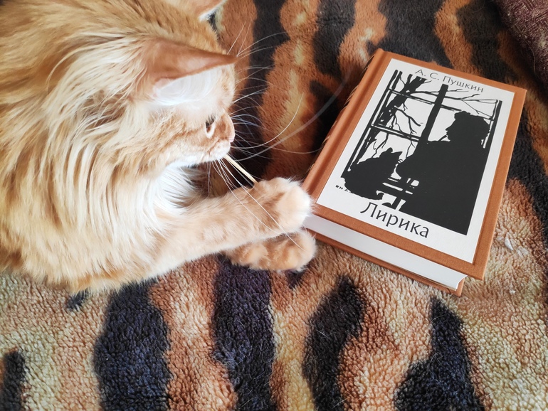 И с домашним животным очень гармонирует, прямо в масть. Коту новая книга тоже очень понравилась. Шелковая ленточка ляссе особенно. Он тоже не может пройти мимо. И тоже старается приобщиться к великой литературе.