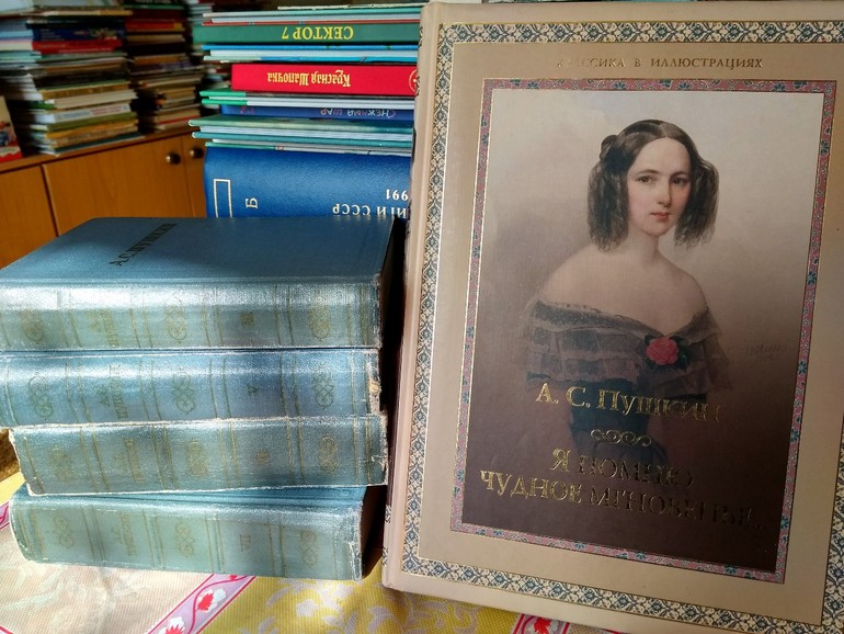 А то мне старых вдруг стало мало почему-то... Постоянно читаемый блекло-синий десятитомник Академии Наук сильно обветшал, подарочное издание, купленное маме из-за цветных портретных иллюстраций слишком громоздко и раздражает пухлой обложкой (кто их вообще придумал и зачем?).