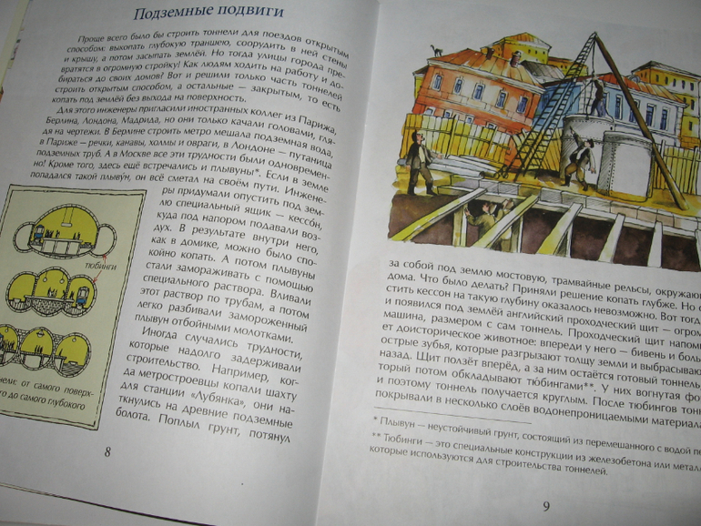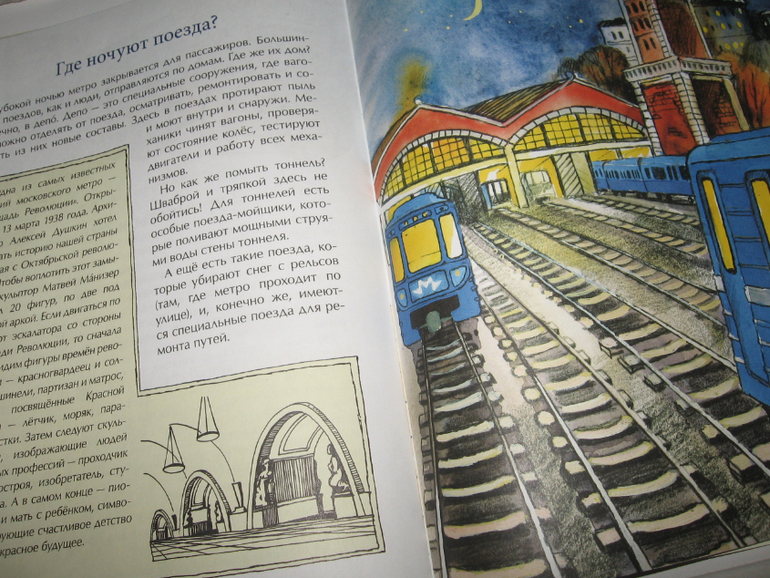 Книгу о метро читали дважды. Первый раз Егор лежал с температурой и просил читать хоть телефонный справочник, лишь бы бубнила) А потом перечитывали уже в нормальном здравии и вместе с Алисой. Мы до этого уже читали книгу про метро В.Малова из серии "Почемучкины книжки", но поскольку это было уже давно, наверное, больше года назад, то эта книга шла отлично. Что-то вспоминалось, что-то стерлось из памяти настолько, что информация казалась новой, а что-то было и действительно новым. В "почемучкиной книжке" встречаются и фотографии, в это только рисунки, но это особо ее и не портит. В любом случае, чтобы понять масштабы, необходимо там просто побывать физически. А для общего представления о предмете вполне достаточный объем информации в обеих книгах. Журнал от издательства "Настя и Никита" брали в библиотеке, чтобы не плодить дубли, но если бы я ее и купила, то о покупке не пожалела бы однозначно. Очень уж хороша вся эта серия.