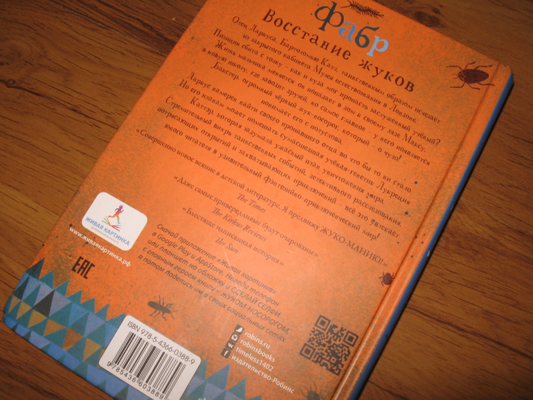 Фабра я все-таки приобрела, правда пока только первые две книги, чтобы понять, а пойдет ли эта серия у нас. С первой пока все отлично, не скажу что уж прям дичайший восторг и любовь, но со слов Егора история ему интересна. Я книгу тоже читала, чтобы составить свое мнение. В целом действительно увлекательная история, и в книге на самом деле куча жуков, но при всей моей нелюбви к насекомым, сцены с жуками содрогания и отвращения не вызывают, скорее даже наоборот. Ну и с самой первой главы Егор стал строить догадки, куда и как исчез отец главного героя, и по ходу чтения следил и отрабатывал разные версии. Ему было интересно догадаться/докопаться до истины раньше героев книги. Но его главная теория, которой он придерживался, оказалась ошибочной, а вот о других он не рассказывал. Может что-то и угадалось у него. Читал не полностью сам, но уже хоть так) Шрифт в книге четкий и крупный, для самостоятельного чтения очень комфортный. Ко второй книге пока не приступали, надеюсь история жуков и дальше будет интересной.