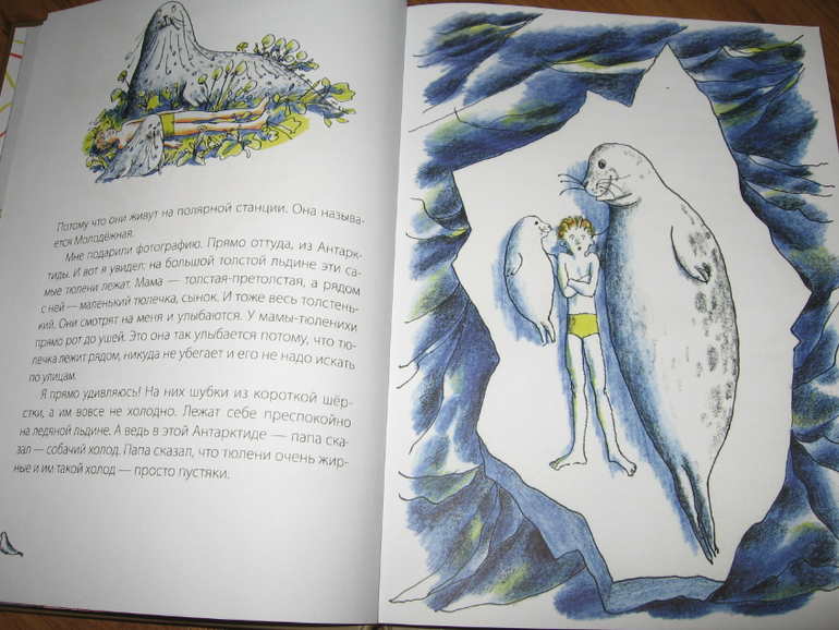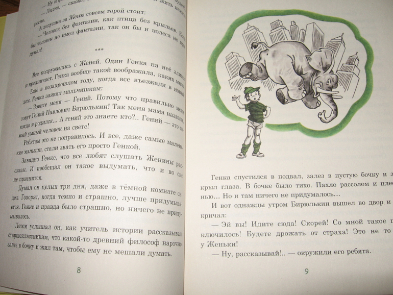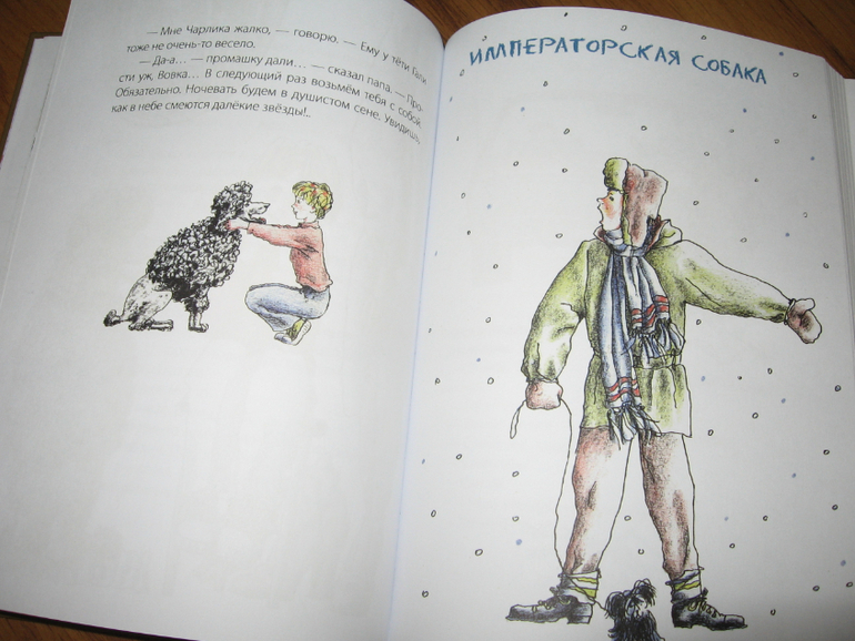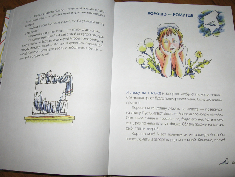 Эту книгу читала сразу для двоих. Рассказики коротенькие, повествующие об обыкновенных детях, в которых легко узнать самого себя, все шалости и игры очень хорошо представляются, и восхищение вызывает манера автора так интересно рассказывать о самых простых вещах. Глядя на мальчика с повязкой на глазу, кажется, что книга обязательно затрагивает войну, но это абсолютно не так. Это просто так талантливо изобразил художник Борьку. А уж Борька-то был бы доволен, что его за раненного приняли. Он именно этого сходства и добивался, когда просил перебинтовать глаз побольше. На самом-то деле там история совершенно не об этом, но раскрывать секрет не стану. Нам этот рассказ пожалуй больше остальных полюбился.