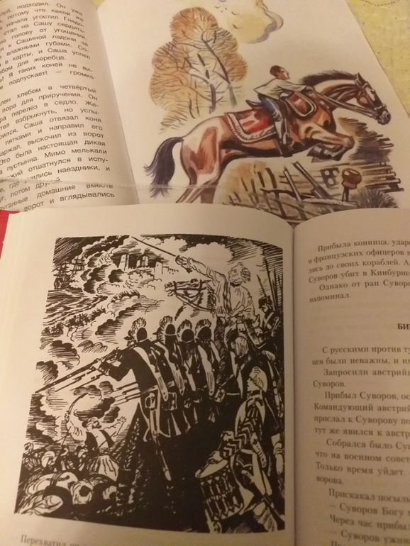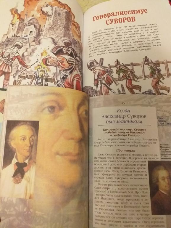 Как Суворов перешел через Альпы содержит обширный, подробный рассказ о последнем походе полководца. Текста немного, написано понятно, но огромное количество рисунков мне было немного лишним. Возможно, мальчики и будут их с любопытством разглядывать, но для меня там оказалось слишком много ненужной информации об обмундировании, оружии, а также мелких карт с указанием перемещений армий, в которых я просто ничего не разглядела и не поняла. Еще на рисунке есть опечатка в названии((( Но это я придираюсь, в целом книга понравилась!