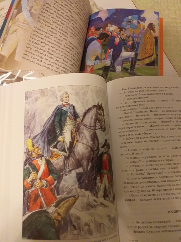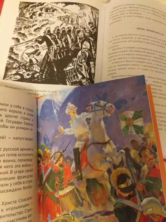 Книга издательства Символик небольшая, красочная. Основное внимание уделено духовному миру полководца, его отношениям с церковью, его жизни как христианина, его любви к солдатам. Целостной картинки жизни Суворова по прочтении не сложилось, но она оставила след как описание человека глубоко верующего и действующего только в согласовании с христианскими законами.