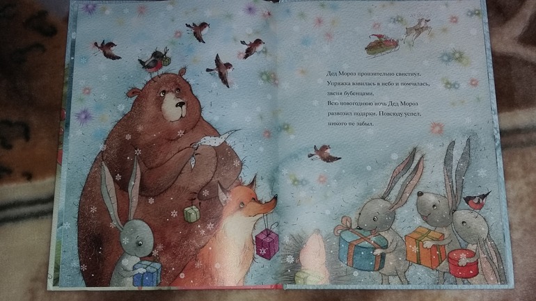 Из новинок тут Зимняя сказка на ночь, добрая история для маленьких о северном сиянии, покажу развороты немного: