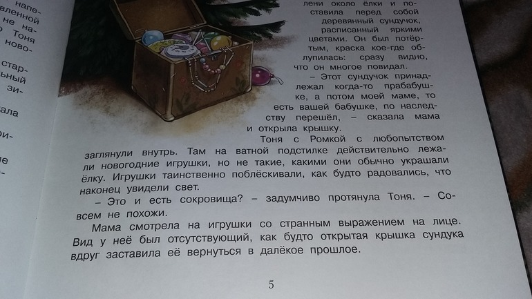 Путешествие по новогодней елке - трогательно написано про старые игрушки. У нас тоже много таких, какие-то еще моей маме принадлежали, несколько из моего детства, есть игрушки купленные в год рождения моих детей, было о чем нам посекретничать с детьми после этой книжки, мультик по этой книжке бы сделали, мне кажется очень удачный бы получился, сама история очень динамичная)