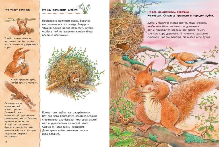 Перед вами красочные познавательные истории о жизни лесных белочек. Как называется белкино гнездо? Чем белка занята долгой зимой? Как она готовит припасы? Как воспитывает бельчат? С кем дружит, кого опасается? На такие и множество других вопросов маленького почемучки ответит эта книга. Она будет также полезной для младшеклассников как дополнительное чтение по предмету "Окружающий мир".