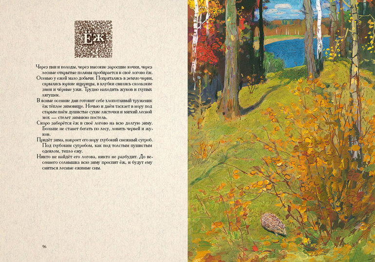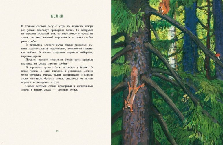 Никого не оставит равнодушным скромный русский лес. Даже в самые морозные зимние дни не затихает здесь жизнь: зарываются в снег тетерева, бродят по занесённым тропинкам стаи волков… Радостно и шумно в лесу весной и летом: пересвистываются друг с другом птицы, рыщут под деревьями звери… Наступает осень, и лесные обитатели начинают готовиться к зиме. Улетают на юг птицы, прячутся ящерицы и ужи, устраивают берлоги медведи и кладовые - белки. Зарисовками жизни русского леса поделились с читателями писатель И. Соколов-Микитов и художник Г. Никольский.