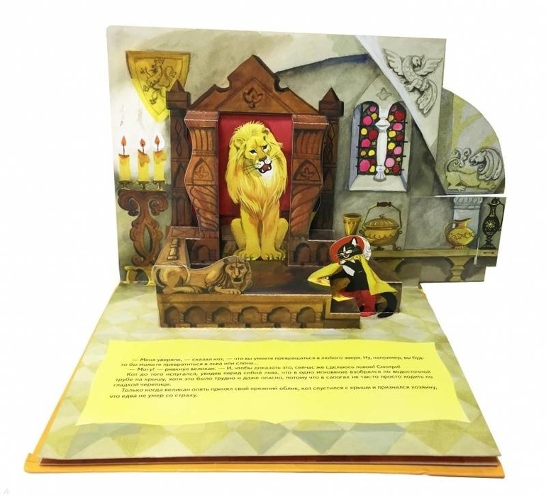 В этой книжке ты встретишься с героями сказки Шарля Перро "Кот в сапогах". А иллюстрации-панорамы придумала и нарисовала известная художница Тамара Шеварева.