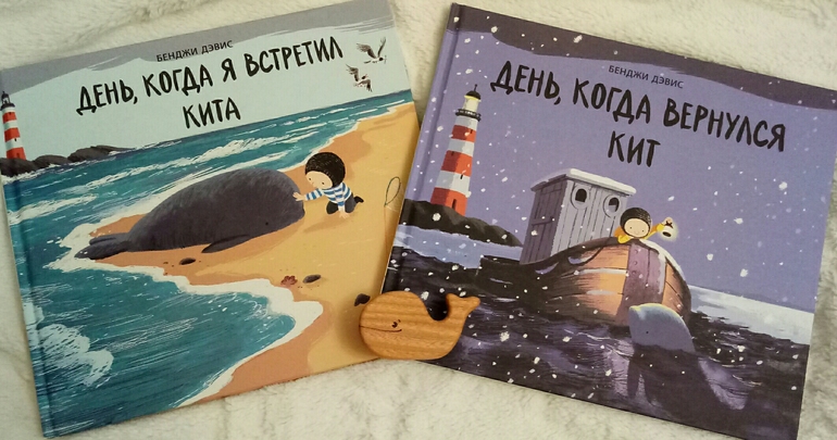 Про кита приносит сам, но читаем почему то в обратном порядке) маленького китенка даже с собой спать несколько раз брал) Чудесные трогательные книги!