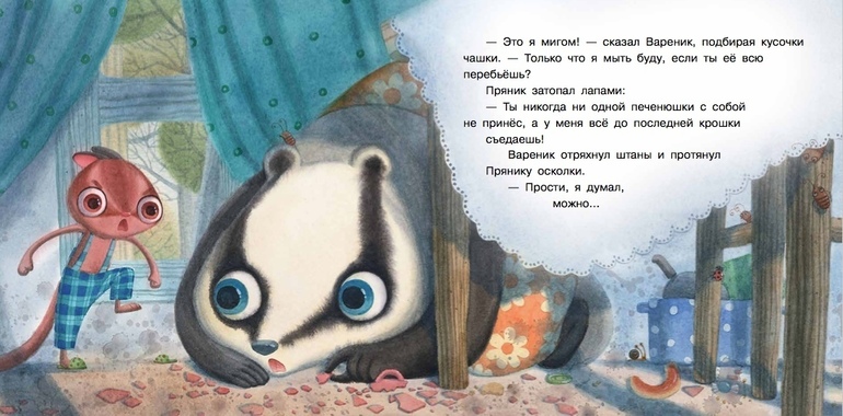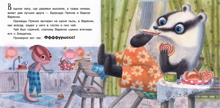 Бурундук Пряник и барсук Вареник то и дело попадают в истории, которые случаются в жизни каждого малыша. Робкий мечтатель Пряник и подумать не мог, что подружится с неугомонным Вареником. Но оказалось, что это совсем не страшно…