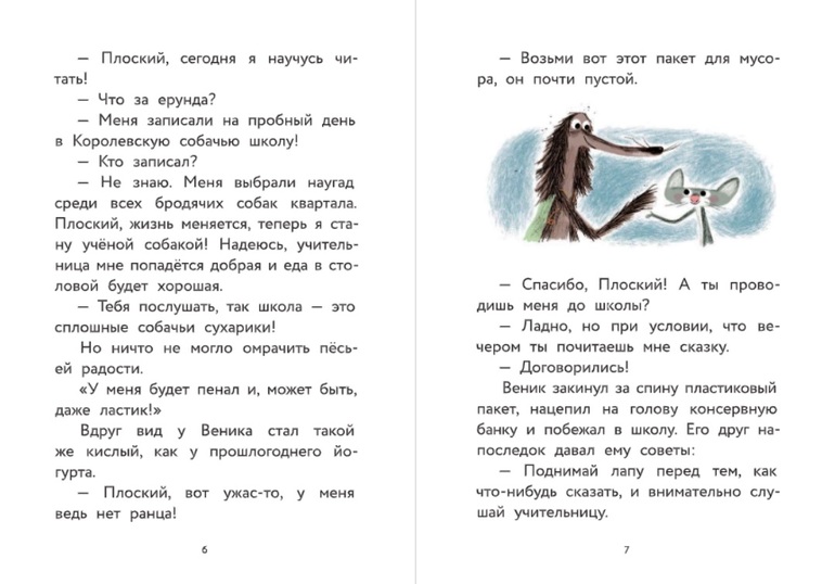 Пёс Веник приглашён в Королевскую собачью школу. Его выбрали наугад, и он по-настоящему счастлив. Даже ранец себе сделал по такому случаю - из целлофанового пакета! Когда ещё дворняжка из мусорного бака сможет научиться читать, а тем более окажется среди таких породистых собак - в плащах-дождевиках и с золотыми поводками! Но даже тут пёс Веник остаётся самим собой - задорным, наивным и немного неуклюжим. И как здорово, что ему решил помочь именно лабрадор, на которого Веник в душе очень похож!