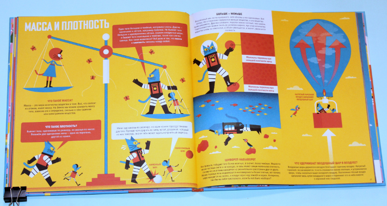 Марсианскому синему коту удалось приоткрыть мне завесу мира точных наук. С помощью ситуаций, которые встречаются в обычной жизни, с помощью огромного количества картинок, с помощью интересных примеров, Астрокот буквально на пальцах объясняет элементарные понятия физики. Но в 6 лет рано читать эту книгу. Чуть позже, конечно, Настя обязательно её изучит, а пока я делюсь с ней своими новыми знаниями. Мы 6 раз в неделю ходим на тренировки, 20 минут в одну сторону и столько же обратно. Часто, чтобы не было скучно идти, играли в слова, в города, в цвета, но что-то всё поднадоело. Недавно мы договорились рассказывать друг другу о прочитанных книгах. Поверьте, это невероятно увлекательно! Я с удовольствием слушаю пересказы моей дочки, и считаю, что это ещё и полезно.) Я же рассказала ей интересные факты о физике. Теперь она знает о силе тяготения, о том, что на Луне она в 6 раз меньше, а значит подпрыгнуть получится в 6 раз выше и дальше! И вот мы шли и представляли, как бы перепрыгивали через припаркованные автомобили, если бы могли и на Земле так же прыгать.)) Ещё она узнала новые для себя слова: гипотеза, теория, гравитация, сила сжатия, сила упругости, разрывное усилие и еще несколько новых понятий. Но про атомы, молекулы, химические элементы, плотность, массу и давление в 6 лет рано беседовать. Подождем еще годика три-четыре и с удовольствием прочитаем всю книгу целиком.