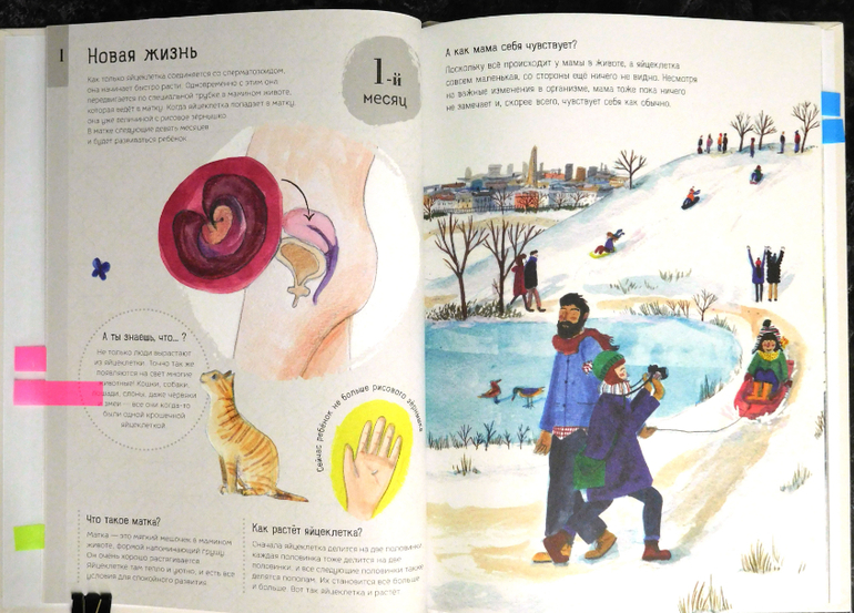 Что забавно, на предпоследнем развороте употребляются слова "оплодотворенная яйцеклетка", "зигота", "зародыш", "эмбрион". Значит, авторы понимают разницу. Почему же в остальной книге этого нет и везде фигурирует одна яйцеклетка?