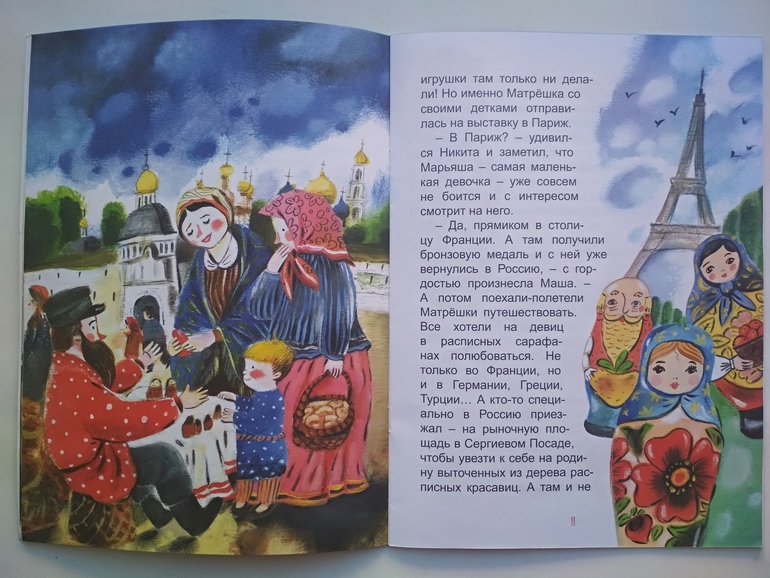 История детям.Наверное, все знают этот необыкновенно красивый и яркий сувенир - русскую Матрёшку. А знаете ли вы, ребята, кем она была создана и когда? Книга Марии Евсеевой "Матрёшки: внучки бабушки Матрёны", вышедшая в серии "Мой удивительный мир", расскажет вам об этом. Вместе с мальчиком Никитой мы познакомимся с сестрами-матрешками: Машей, Дашей, Глашей, Наташей и Марьяшей. Они расскажут историю своей семьи, обратят внимание на отличительные особенности русских матрёшек, которые создавались в разных городах России, расскажут о своём сводном брате Ваньке-Встаньке. Эта книга адресована детям дошкольного возраста, она написана очень доступным языком и поможет ребенку в познании окружающего мира, а красочные иллюстрации Дианы Лапшиной дополнят детское воображение.