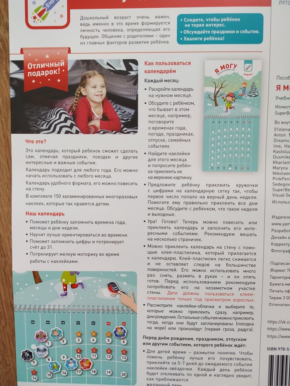 Каких только развивающих пособий нет! На любой запрос, кажется, найти можно. Вот, например, про работу с календарем издательство "Я могу" развивашку выпустило.