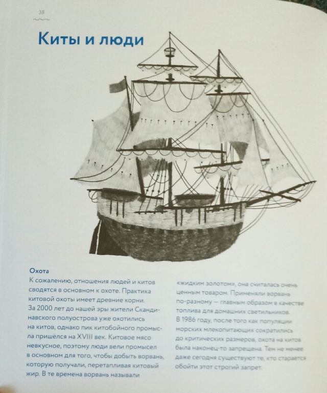 Эта книга про китов очень необычно оформлена, черно белые рисунки и голубые буквы текста, стильно, гармонично и идельно подходяще для заданной темы!