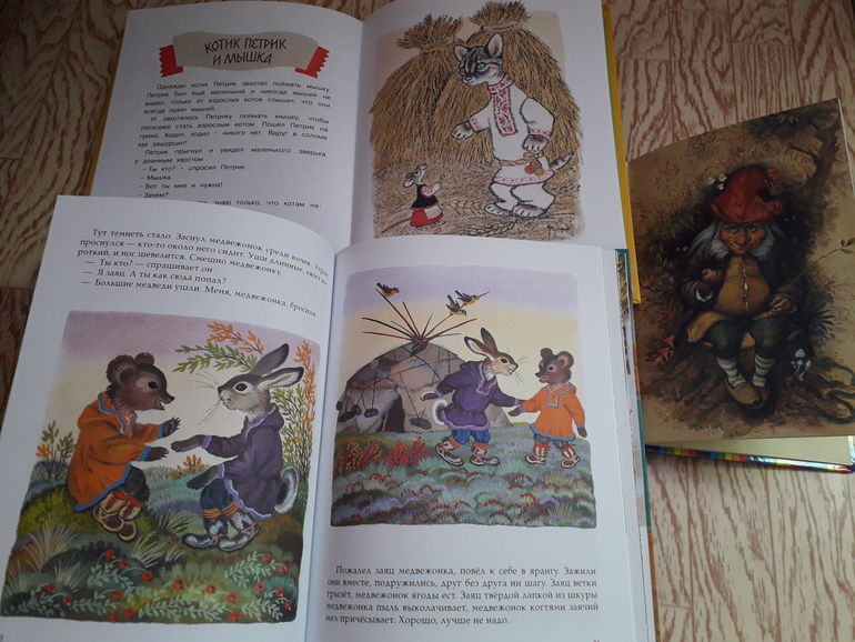 Зато я воспользовалась случаем и пропихнула в наше чтение сказки. Не стала брать стандартные русские народные про зверей, а достала оригинальные белорусские и северные сказки. И те, и те, Санька, оказывается, неплохо помнил. Хороший признак.