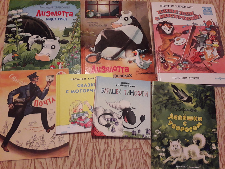 Если раньше у меня были какие-то мысли по поводу "обязательных" списков, то все теории разбились об практику. Нет универсальных книг, которые нравятся всем. Мы правда много перечитываем. Санька вроде бы не против, сам просит перечитать понравившееся, да и мне приятно, что книги "работают". Всё равно я каждый месяц стараюсь добавить что-то новое.