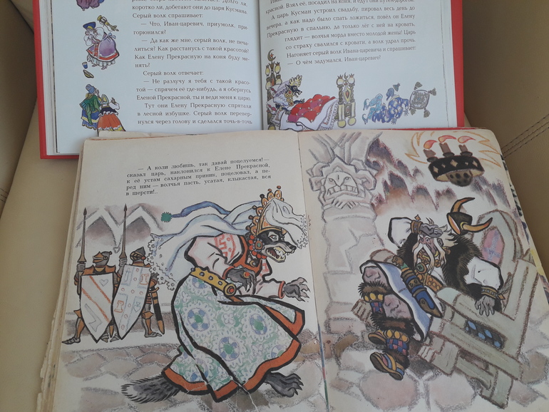 Старая сказка про Волка написана очень красиво, певучий такой язык, гладкий. После неё другая версия суховата, краткая какая-то. А версия Важдаева длиннее, интереснее и гуманней-братьев изгоняют. Они живы, но вынуждены скитаться, неприкаянные. "Сивку-бурку" читали и перечитываем, нравится. Хочу ещё попробовать какие-нибудь сказки. Царевну-Лягушку, например. Не факт, что всё подряд читать будем, но понемногу можно попробовать.